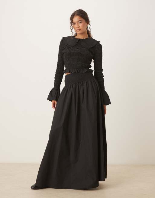 Glamorous - Jupe d'ensemble longue à taille basse froncée - Noir