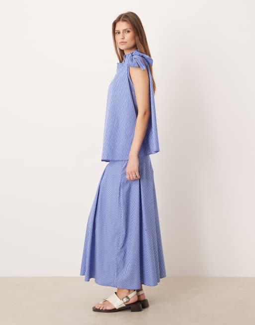 Glamorous - Jupe d'ensemble longueur mollet à taille basse et rayures - Bleu et blanc