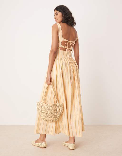 Glamorous - Robe longueur mollet rayée à taille basse et encolure carrée - Blanc et orange