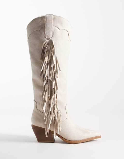 Glamorous - Santiags montantes à franges en suédine - Crème