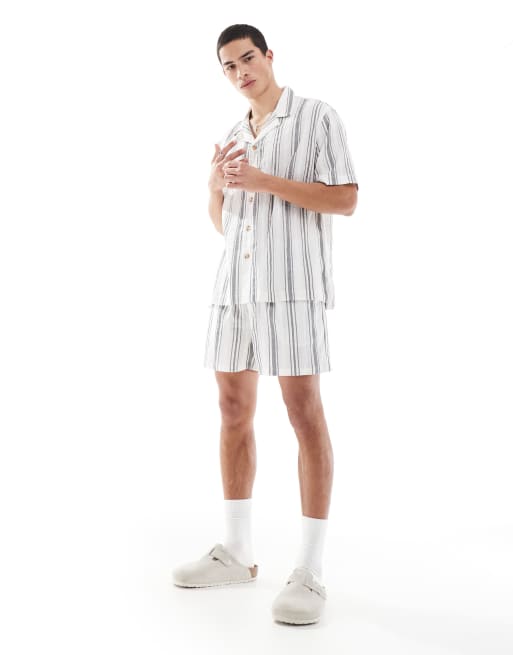 Goldsboro - Ensemble de plage rayé avec chemise col à revers - Noir et blanc