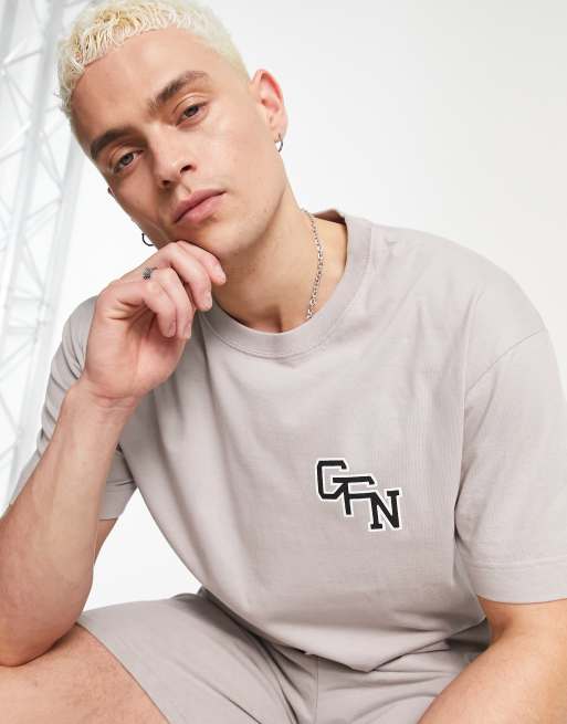 Good For Nothing - T-shirt d'ensemble oversize à logo universitaire imprimé - Gris pierre