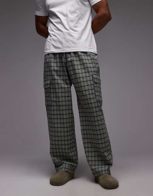 Gramicci - Swell - Pantalon cargo ample à carreaux - Vert et blanc