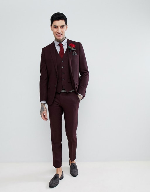 Harry Brown - Costume slim en flanelle de laine mélangée - Bordeaux