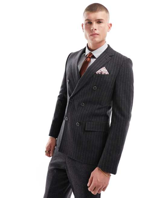 Harry Brown - Veste de costume de mariage en tweed à double boutonnage - Rayures marron