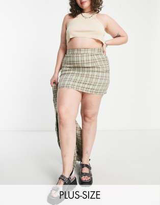 Heartbreak Plus - Mini-jupe d'ensemble ajustée à carreaux - Sauge