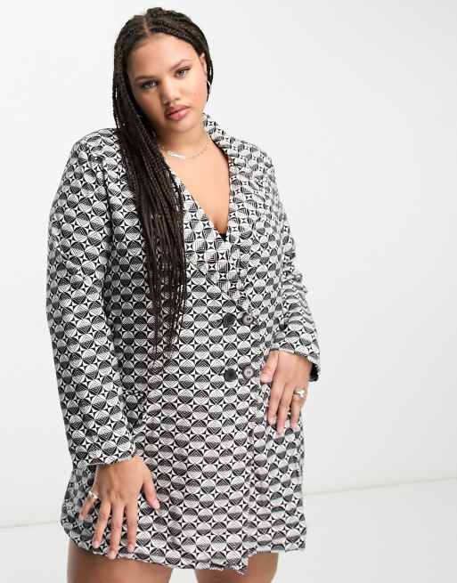 Heartbreak Plus - Robe blazer oversize à carreaux - Noir et blanc