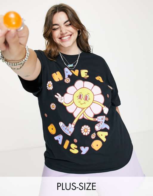 Heartbreak Plus - T-shirt oversize avec imprimé Daisy Day - Noir