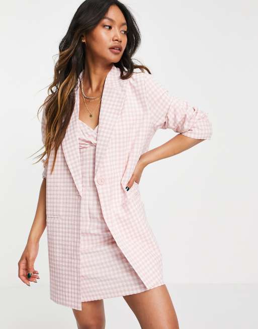 Heartbreak - Blazer d'ensemble long à carreaux vichy - Rose