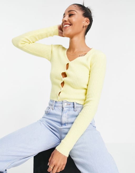 Heartbreak - Ensemble en maille avec gilet et mini-jupe - Jaune citron