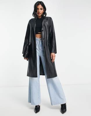 Helene Berman - Manteau universitaire en similicuir style années 90 - Noir