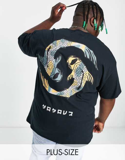 HNR LDN Plus - T-shirt oversize avec imprimé carpe koï au dos - Noir