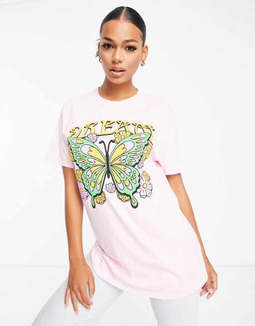 HNR LDN - T-shirt oversize avec imprimé papillon - Rose