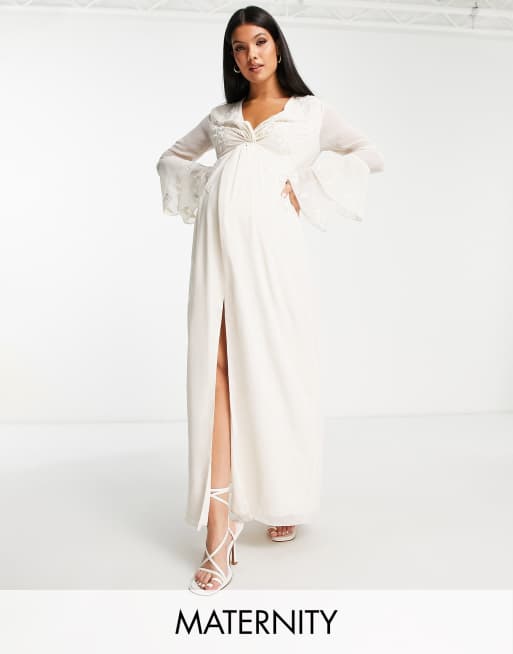 Hope & Ivy Maternity - Robe de mariée longue brodée à manches volantées - Ivoire