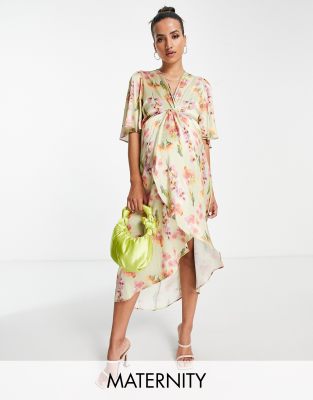 Hope & Ivy Maternity - Robe mi-longue nouée sur le devant - Sauge fleuri