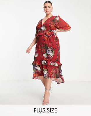Hope & Ivy Plus - Robe rétro mi-longue à manches évasées - Fleuri mélangé