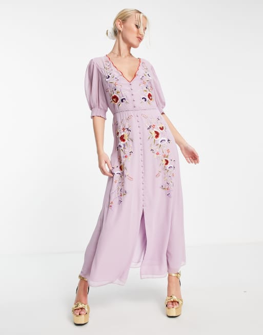 Hope & Ivy - Mila - Robe mi-longue brodée - Rose