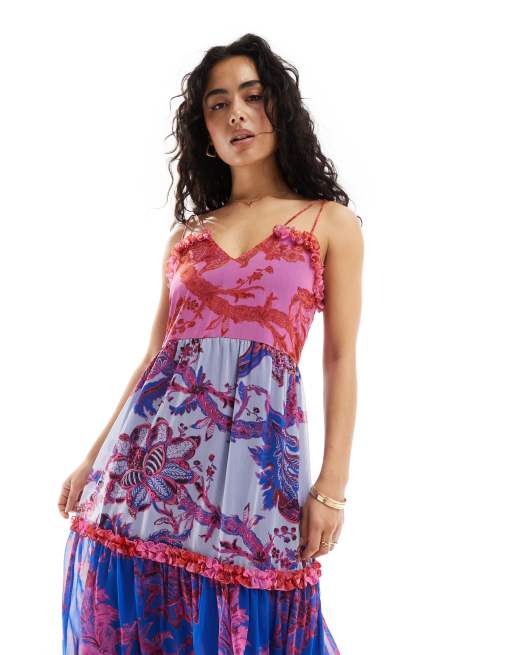 Hope & Ivy - Robe babydoll mi-longue à fines bretelles et imprimé fleurs color block avec liens aux épaules