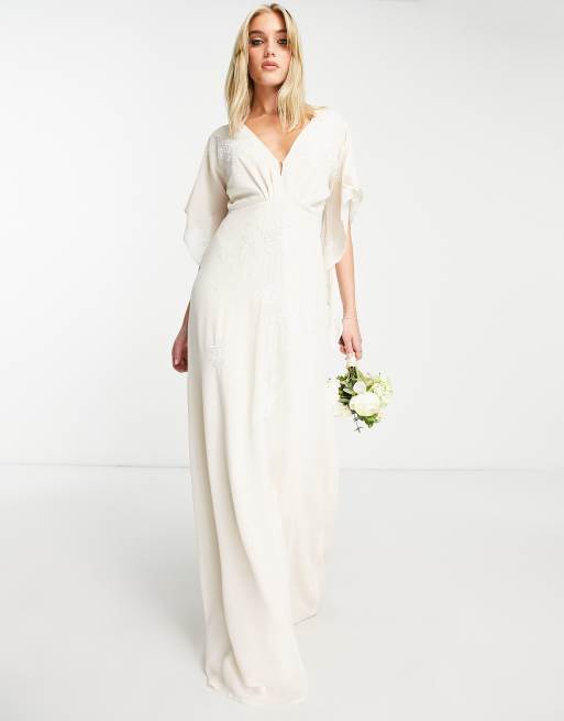 Hope & Ivy - Robe longue de mariée avec dos nu et manches cape - Ivoire