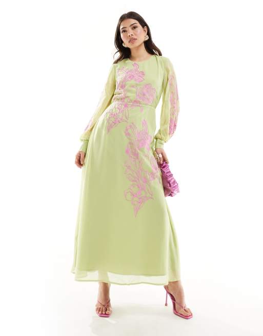 Hope & Ivy - Robe longue évasée à broderies de qualité supérieure - Menthe/violet