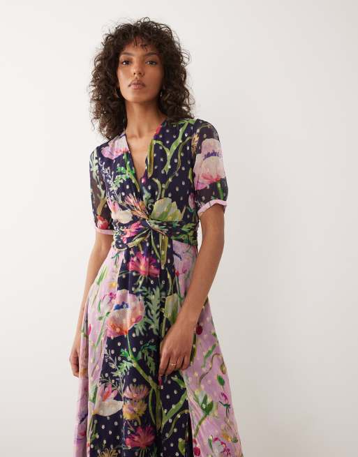 Hope & Ivy - Robe mi-longue à fleurs variées avec buste cache-cœur