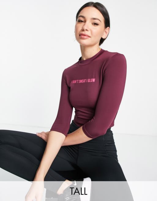 Hoxton Haus Tall - Crop top de sport à manches longues avec inscription - Violet foncé
