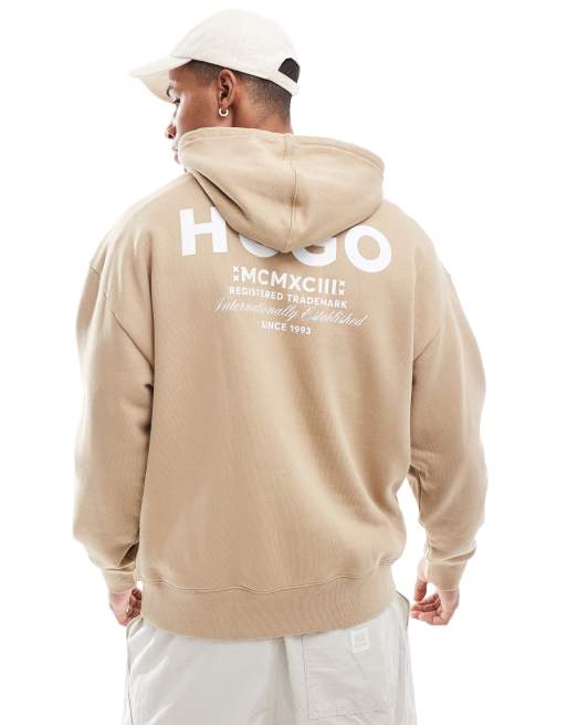 HUGO Blue - Nazardo - Sweat à capuche à enfiler - Beige