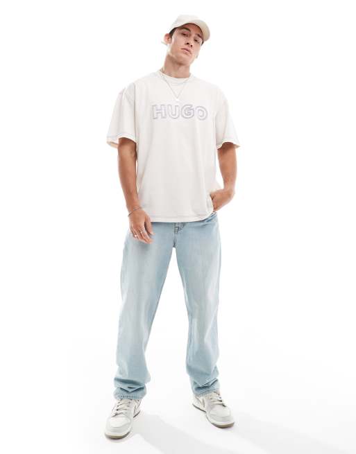 HUGO Blue - Nitlogo - T-shirt oversize - Blanc