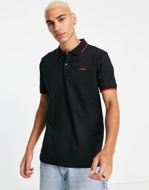 Hugo - Dinoso - Polo coupe slim à liseré - Noir