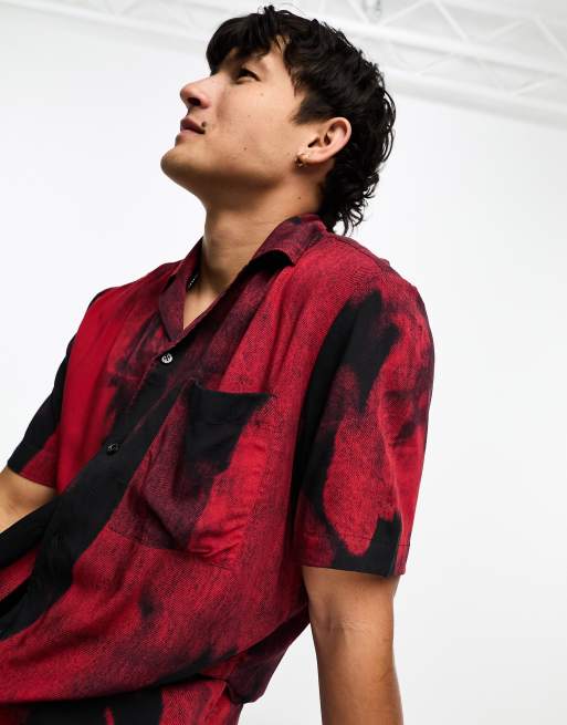 HUGO - Ellino - Chemise décontractée imprimée - Rouge et noir