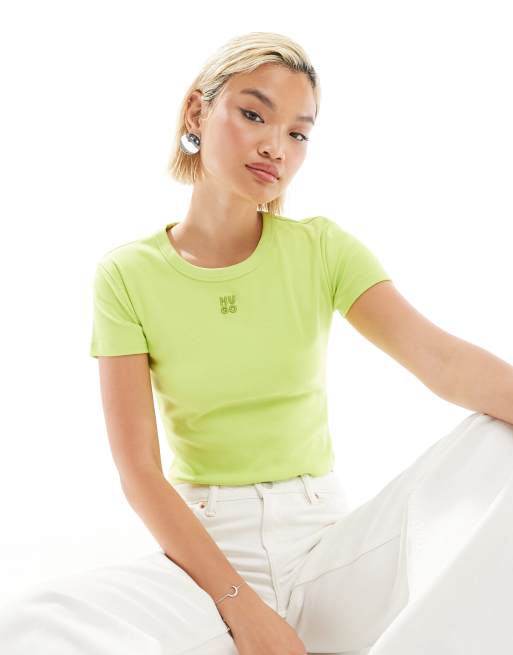 HUGO Red - Delanor - T-shirt crop top - Jaune