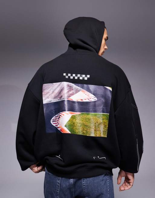 HUGO Red - Doad - Sweat à capuche oversize à imprimé piste de course - Noir