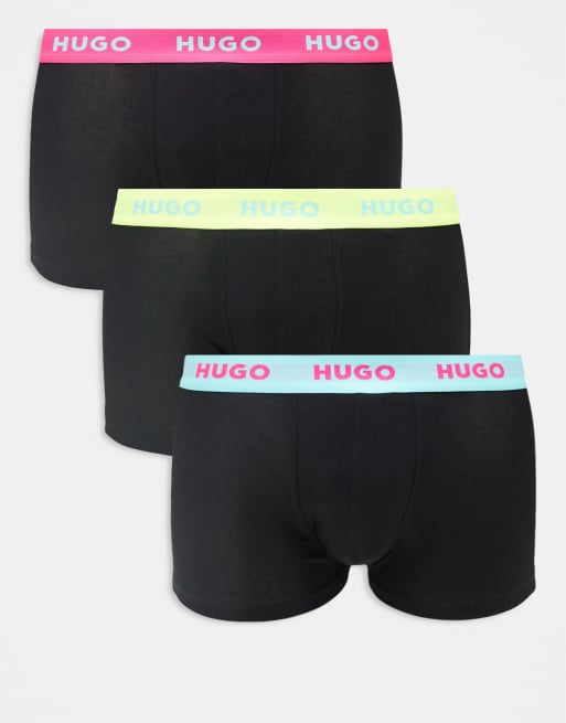 HUGO Red - Lot de 3 boxers avec taille fluo à logo - Noir