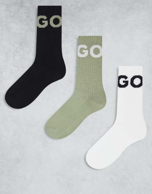 HUGO Red - Lot de 3 paires de chaussettes de sport côtelées avec grand logo - Blanc, noir et vert clair