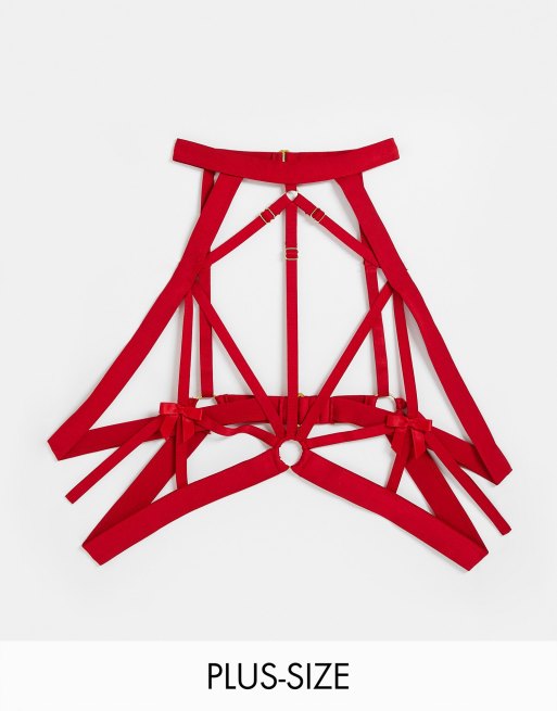 Hunkemöller Curve - Minx - Brassière style harnais à bretelles et nœud - Rouge