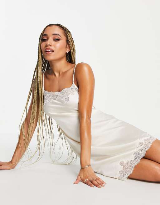 Hunkemoller - Nuisette de mariée en satin bordé de dentelle - Champagne