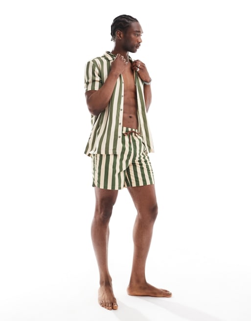 Hunky Trunks - Ensemble de plage rayé - Kaki et crème