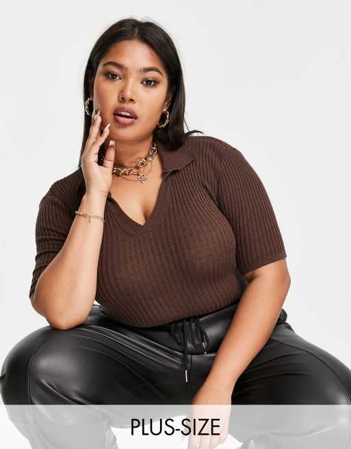 I Saw It First Plus - Body en maille côtelée avec col - Chocolat