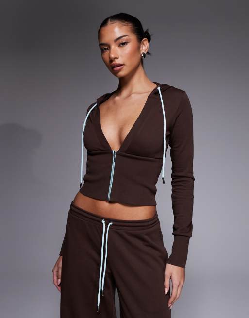 I.AM.GIA - Arlo - Sweat à capuche d'ensemble cintré à la taille en coton mélangé avec manches longues et décolleté plongeant - Marron/bleu pastel