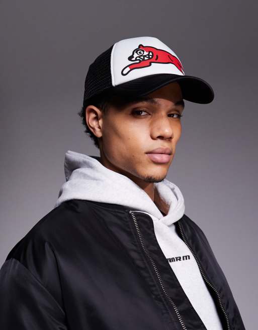 ICECREAM - Casquette de baseball style camionneur à motif chien qui court - Noir et blanc