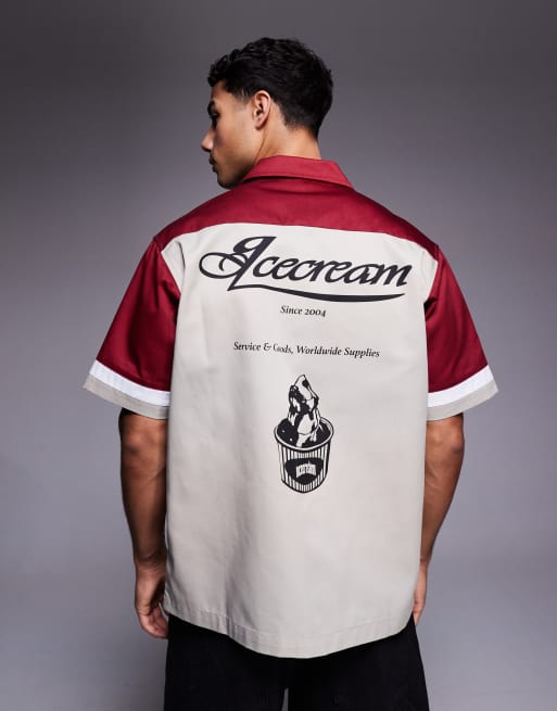 ICECREAM - Parlour - Chemise utilitaire à empiècements contrastants - Beige et rouge