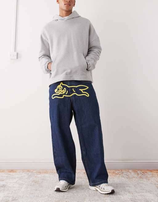 ICECREAM - Triple Scoop - Jean ample à imprimé chien qui court - Bleu foncé délavé