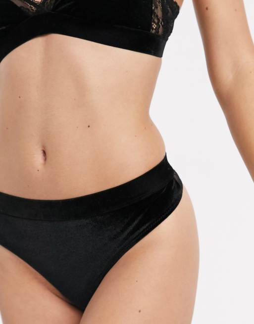 Ichi - Culotte en velours bordée de dentelle