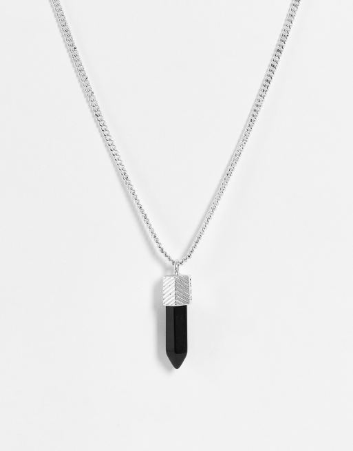 Icon Brand - Collier avec pendentif pierre en forme de prisme - Argenté