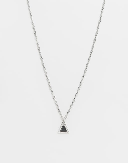 Icon Brand - Collier chaîne avec pendentif triangle et pierre noire - Argenté
