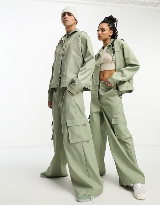 IIQUAL - Ensemble unisexe avec veste utilitaire et pantalon cargo ample - Vert sauge
