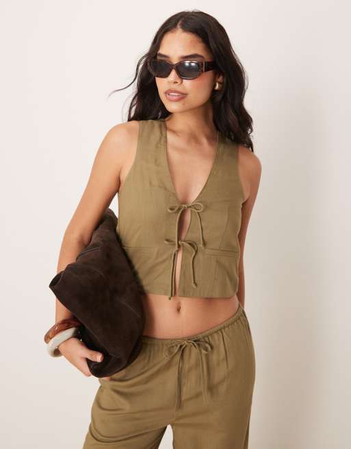 Iisla & Bird - Gilet de costume d'ensemble de plage avec doubles liens - Vert olive