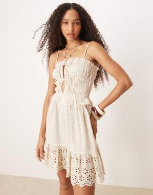 Iisla & Bird - Robe de plage courte en broderie anglaise avec liens noués à l'avant - Grège