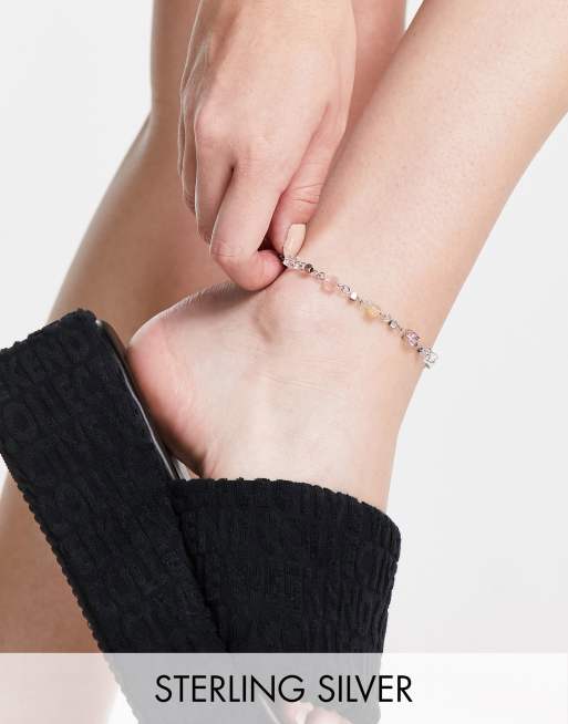Image Gang - Denisa - Bracelet de cheville en acier inoxydable avec perles pastel - Argenté