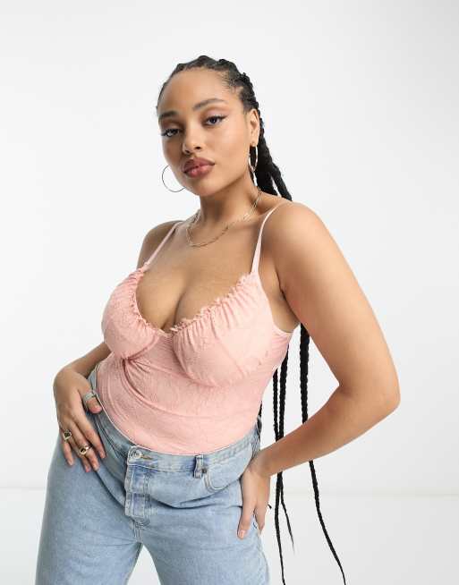 In The Style Plus - Body en dentelle - Rose